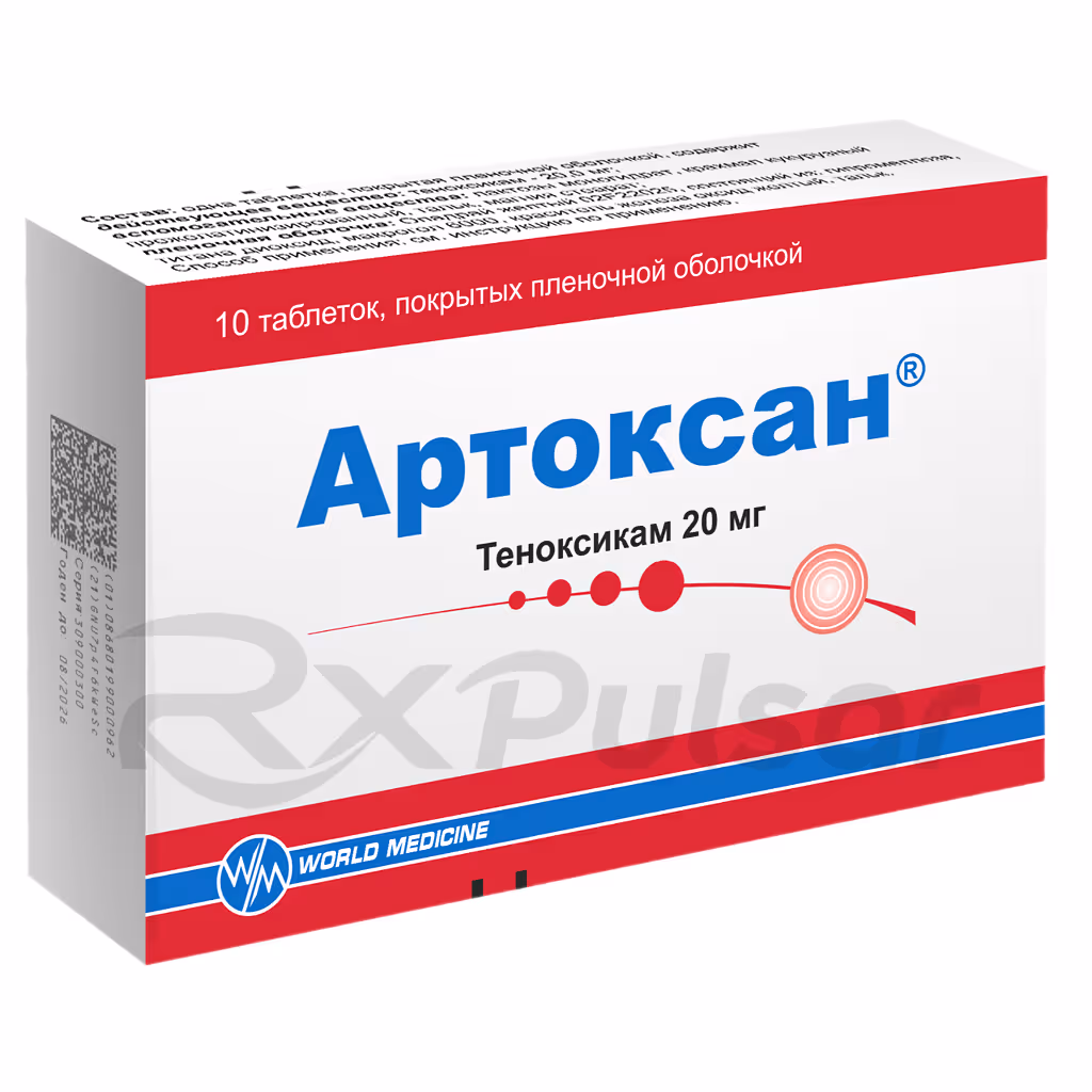 Artoxan 20mg tablets contain tenoxicam, a nonsteroidal anti-inflammatory drug (NSAID). It’s designed for the symptomatic treatment of various conditions, effectively managing pain and reducing inflammation.