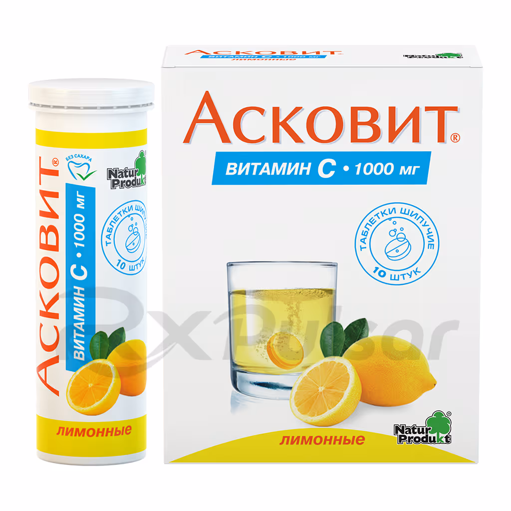 Askovit effervescent tablets are a dietary supplement providing a high dose of Vitamin C (ascorbic acid). Each tablet delivers 1000mg of this essential nutrient, contributing to the body’s overall health and well-being. Ascorbic acid plays a crucial role in various physiological processes, including immune function, collagen synthesis, and antioxidant defense.