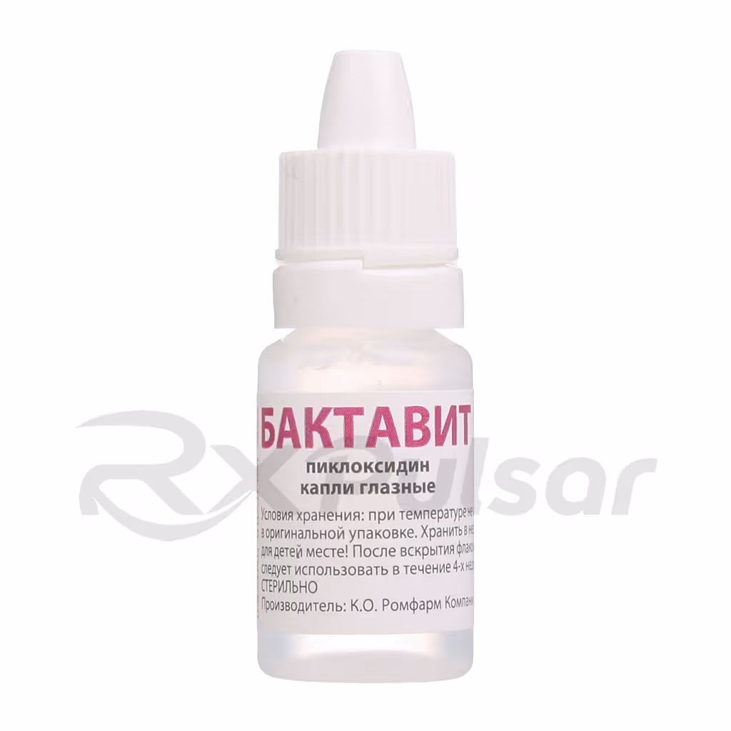 BAKTAVIT is an ophthalmic solution containing picloxydine dihydrochloride, a powerful antiseptic derived from biguanides. It’s effective against a wide spectrum of bacteria, including both gram-positive and gram-negative strains, as well as chlamydia and some viruses and fungi. This makes it a versatile treatment option for various eye infections.