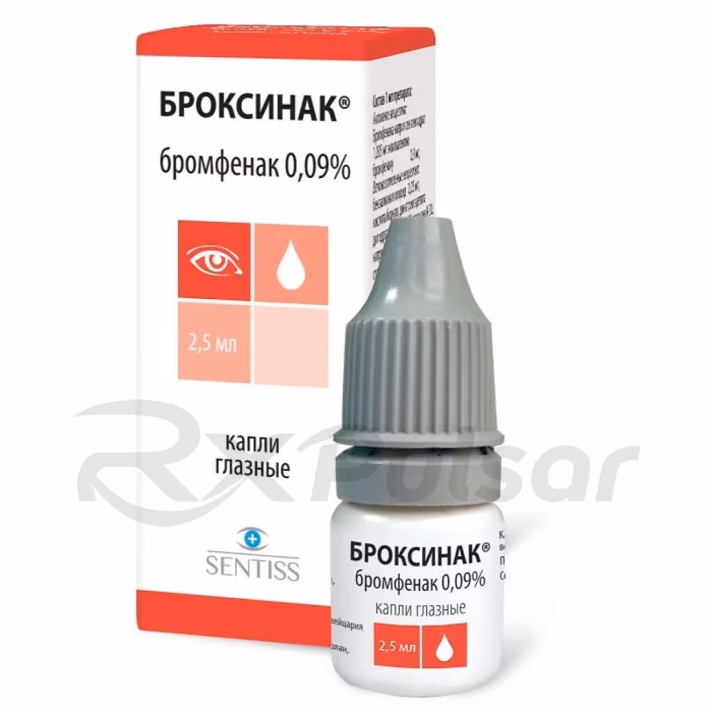 BROXINAC 0.09% eye drops are a non-steroidal anti-inflammatory drug (NSAID) formulated to effectively manage postoperative ocular inflammation and pain. Its active ingredient, bromfenac sodium, targets the source of discomfort.