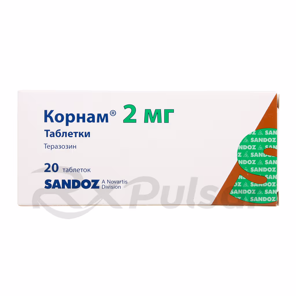 CORNAM is a medication containing terazosin, an alpha-1 adrenergic receptor blocker. This medication works by relaxing the muscles in the prostate and bladder neck, improving urinary flow.