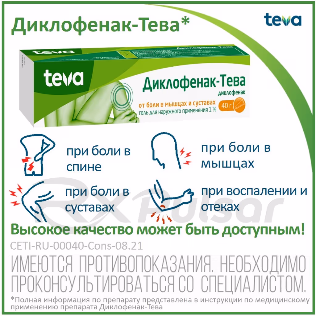 Diclofenac-Teva Topical Gel 1% finds its primary application in the management of localized pain and inflammation associated with various musculoskeletal conditions. Its targeted action makes it a valuable tool for addressing specific areas of discomfort without the systemic effects often associated with oral NSAIDs.