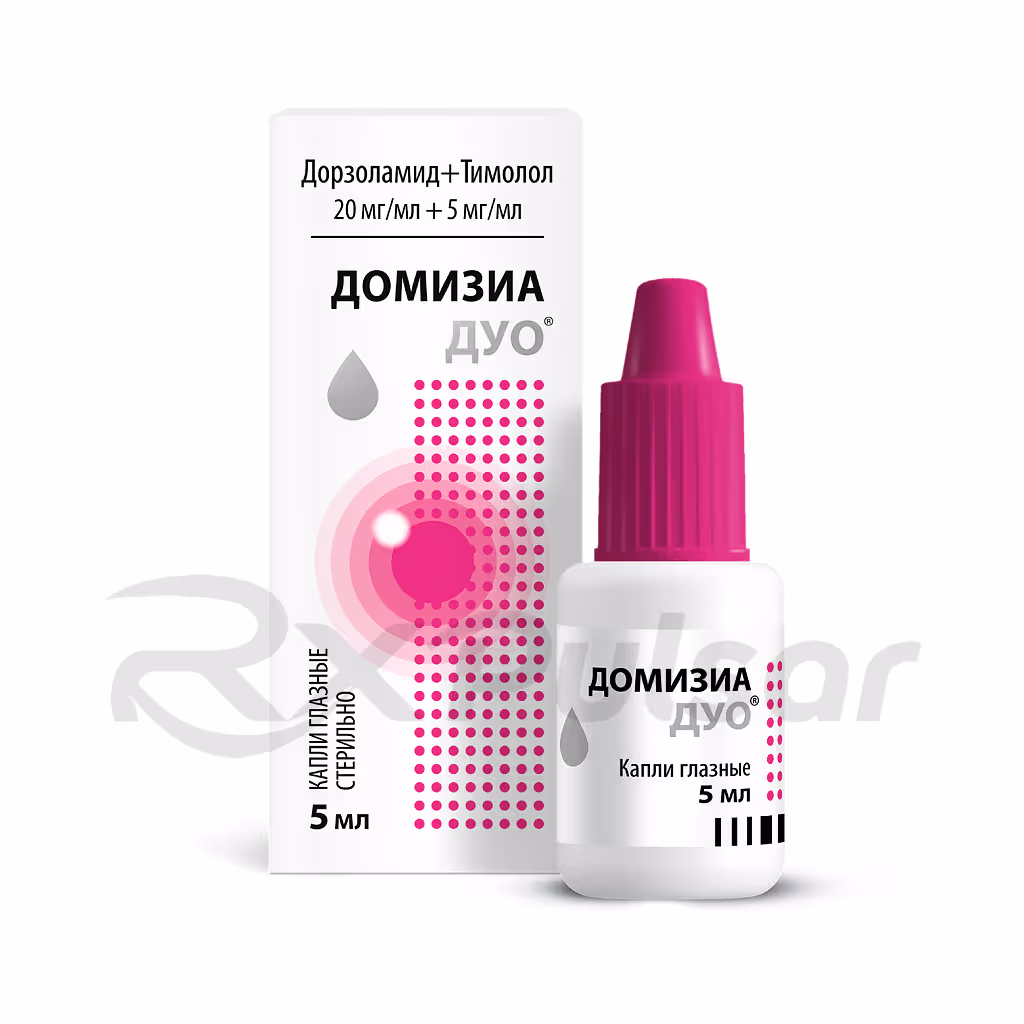 Domizia Duo is a combination eye drop medication used to treat elevated intraocular pressure (IOP). It contains two active ingredients that work together to lower IOP.