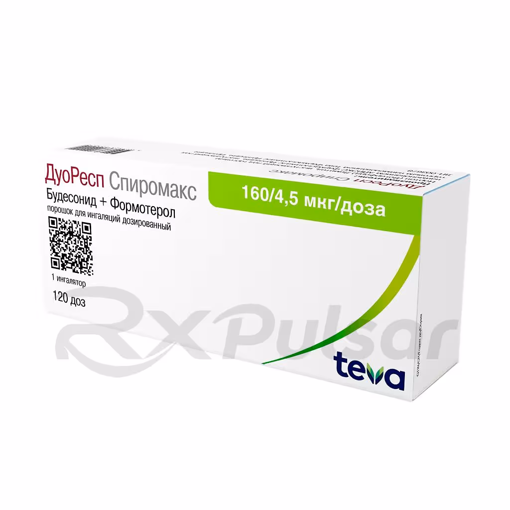 DUORESP SPIROMAX is a combination inhaler containing budesonide, a corticosteroid with anti-inflammatory properties, and formoterol, a long-acting beta2-agonist bronchodilator. This unique combination addresses both the inflammation and bronchoconstriction contributing to respiratory symptoms.