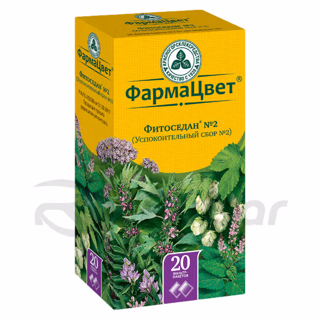 The specific ingredients of Fitosendan No. 2 are not publicly available from the provided text. However, it is a blend of herbs traditionally known for their sedative and calming effects.