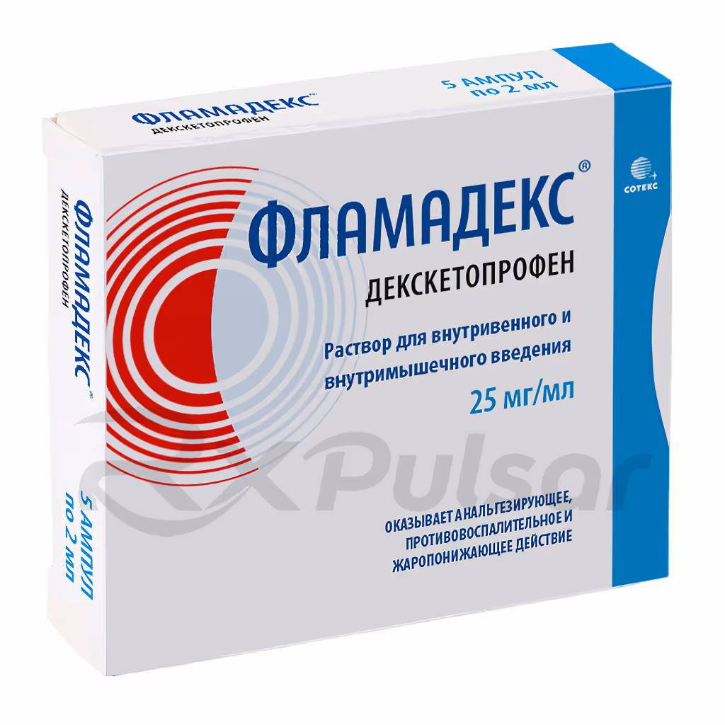 FLAMADEX is a sterile, injectable solution containing dexketoprofen, a non-steroidal anti-inflammatory drug (NSAID). Specifically designed for intravenous (IV) or intramuscular (IM) administration, it provides rapid relief from moderate to severe pain and reduces accompanying inflammation. This makes it a valuable tool in situations demanding swift and effective pain management.