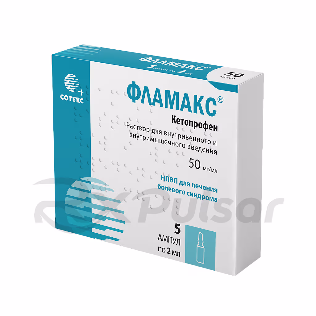 Flamax solution for injection is a non-steroidal anti-inflammatory drug (NSAID). It’s derived from propionic acid and contains ketoprofen as its active ingredient. This medication is designed for intravenous and intramuscular administration, providing rapid relief from pain and inflammation.