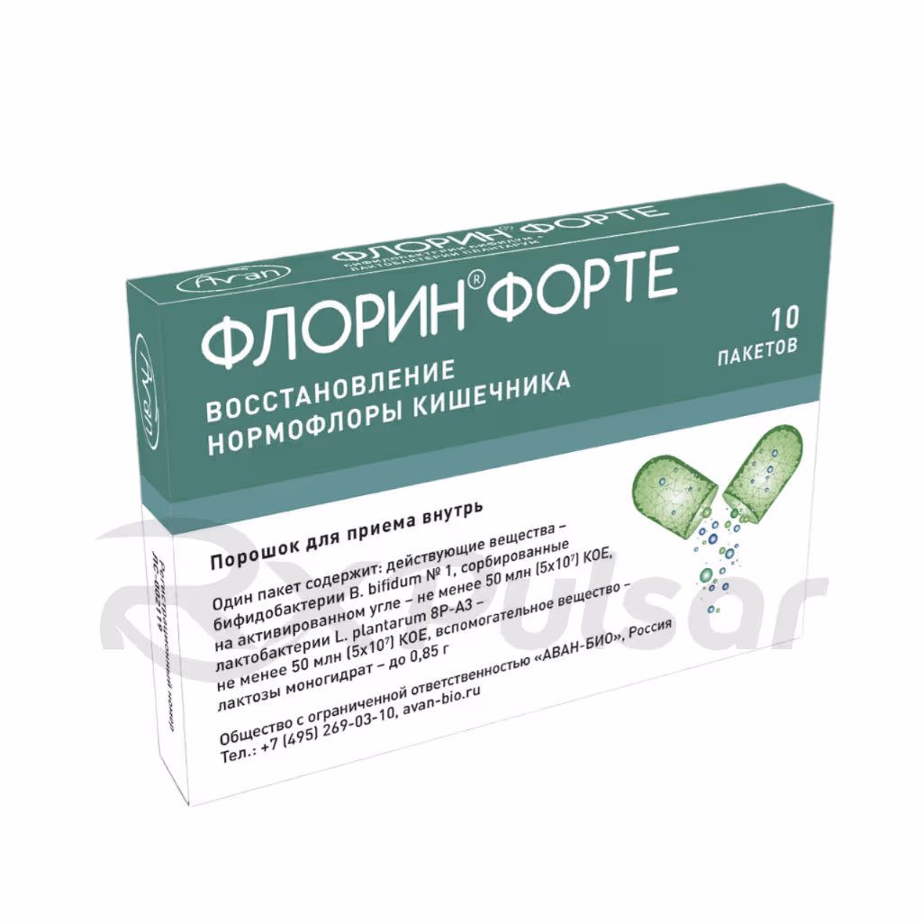 Florin Forte is a probiotic supplement formulated as a powder for oral use. Each sachet contains a blend of live, beneficial bacteria, specifically Bifidobacterium bifidum and Lactobacillus species. These bacteria are sorbed onto activated charcoal, enhancing their stability and delivery to the gut.