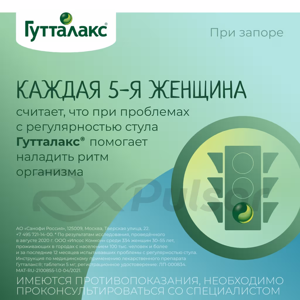 Guttalax offers a convenient dosage form. The tablets are easy to swallow and require no special preparation or mixing, making them a user-friendly option for individuals seeking straightforward constipation relief. The availability in a 5mg dosage allows for precise and flexible adjustments based on individual needs and physician recommendations.