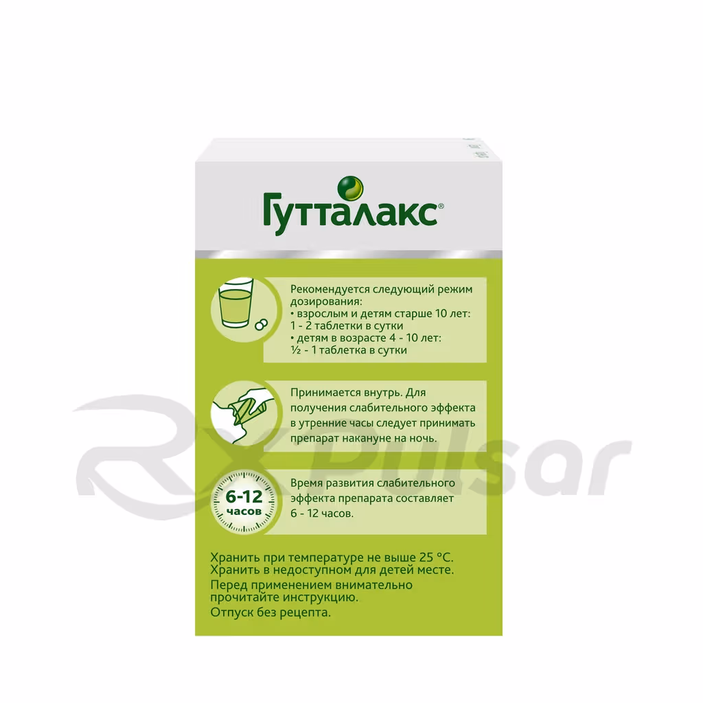 Guttalax tablets are for oral administration only. Always swallow the tablets whole with a sufficient amount of liquid, such as water or juice, to aid in swallowing and prevent potential esophageal irritation. Never crush or chew the tablets, as this can alter the release of the active ingredient and potentially lead to unpredictable effects.