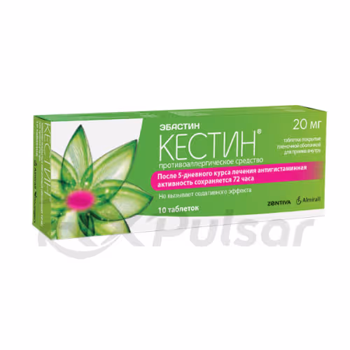 Kestin is an antihistamine medication used to treat the symptoms of allergic conditions. Its active ingredient, ebastine, effectively blocks histamine receptors, reducing allergic responses.