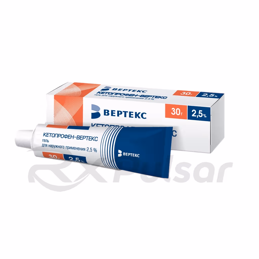 Ketoprofen-Vertex Topical Gel 2.5% is a non-steroidal anti-inflammatory drug (NSAID) formulated as a topical gel for external use. It contains ketoprofen, a potent analgesic and anti-inflammatory agent, which works to reduce pain and swelling in affected areas. Unlike oral NSAIDs, the topical application minimizes systemic absorption, potentially reducing the risk of gastrointestinal side effects.