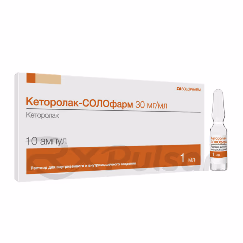 Ketorolac-Solopharm is a powerful nonsteroidal anti-inflammatory drug (NSAID) administered via intravenous (IV) or intramuscular (IM) injection. Each milliliter (ml) of solution contains 30mg of ketorolac tromethamine, a potent analgesic. This formulation is designed for short-term management of acute pain, offering rapid onset and effective relief. The medication is not intended for long-term use and should only be used under the guidance of a healthcare professional.
