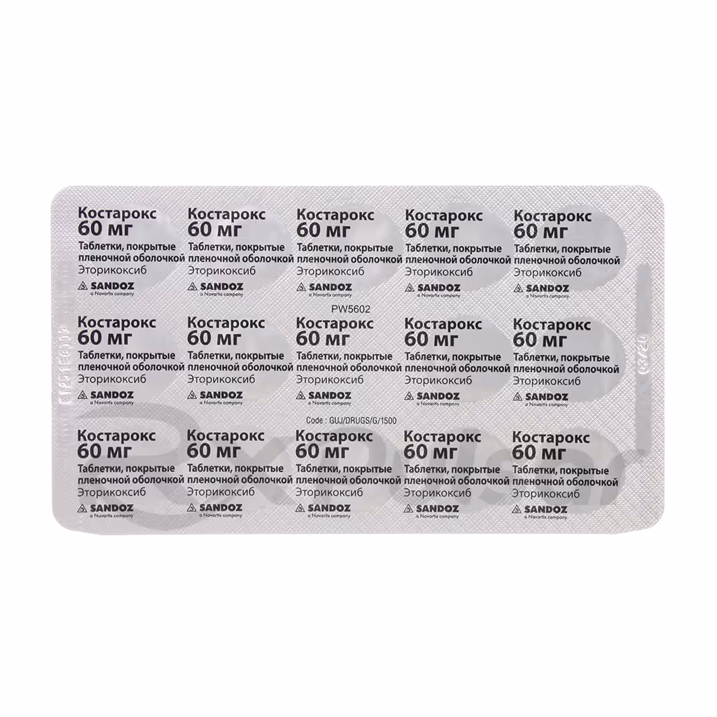 Kostarox is available in film-coated tablets for easy oral administration. The film coating ensures smooth swallowing and helps protect the etoricoxib from degradation in the stomach. This formulation contributes to consistent drug absorption and predictable therapeutic effects. It’s important to remember that Kostarox is a prescription medication, meaning a doctor’s consultation is necessary before use to determine suitability and appropriate dosage.