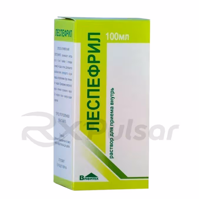 Typically, LESPEFRIL is administered orally. The recommended dosage is 5-15 ml (1 teaspoon to 1 tablespoon) three to four times daily. It may be diluted with water before consumption for improved palatability.