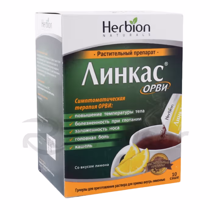 Linkas ORVI is a herbal preparation in granule form, designed to be dissolved in hot water to create a drinkable solution. It’s intended for the temporary relief of symptoms associated with acute respiratory viral infections (ARVI), such as the common cold and flu.