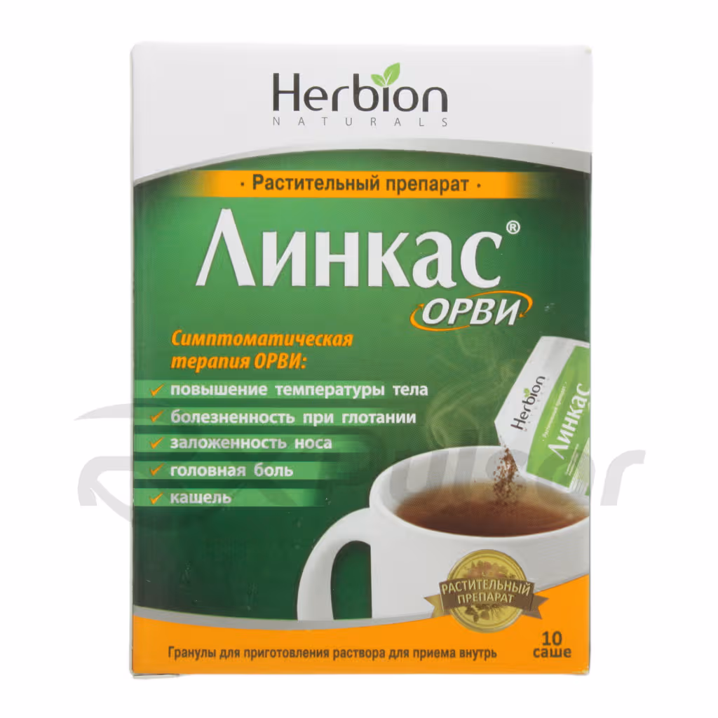 Linkas ORVI is a herbal preparation in granule form designed to provide symptomatic relief from the common cold and other upper respiratory tract infections (URTIs). It’s formulated to address common symptoms such as headache, nasal congestion, sore throat, and cough. The granules are dissolved in hot water to create a drinkable solution.