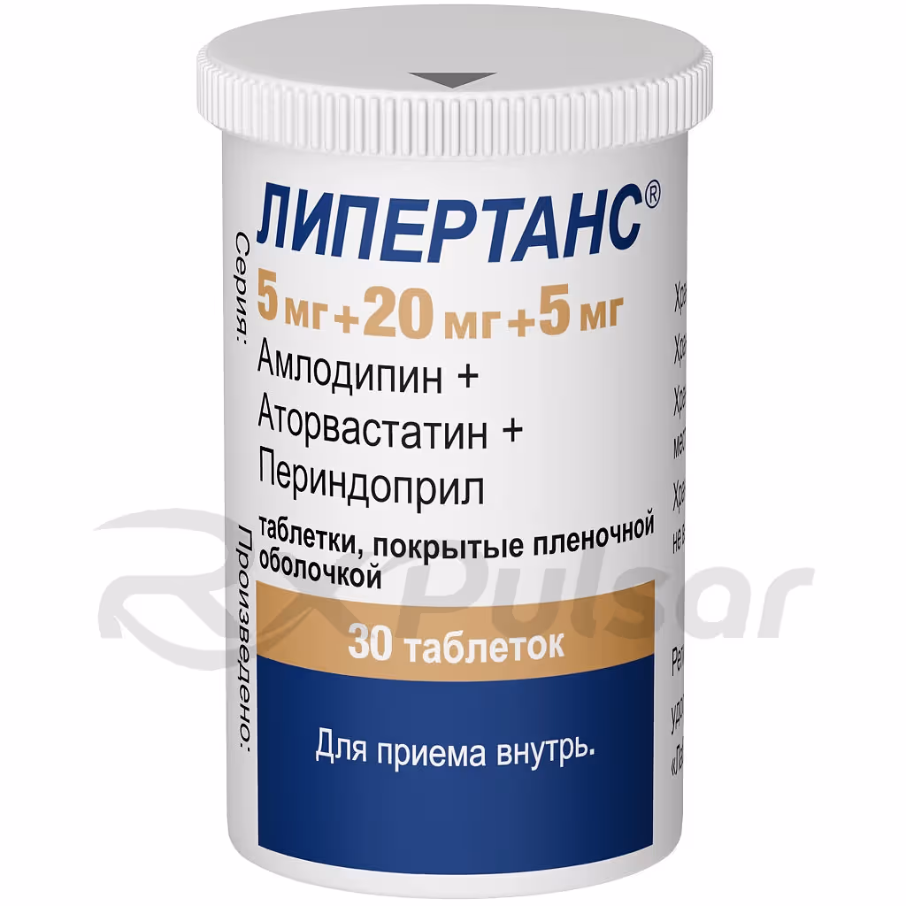 Lipertans is a fixed-dose combination containing atorvastatin, a lipid-lowering agent; perindopril arginine, an ACE inhibitor; and amlodipine, a calcium channel blocker. Each component plays a distinct yet complementary role in addressing various cardiovascular risk factors.