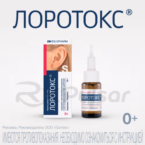 Lorotox ear drops are indicated for the symptomatic treatment of ear pain in conditions such as acute exudative otitis media (a middle ear infection with fluid buildup). It may also be used for otitis media as a complication of influenza or other viral infections, and barotraumatic otitis media (related to pressure changes).