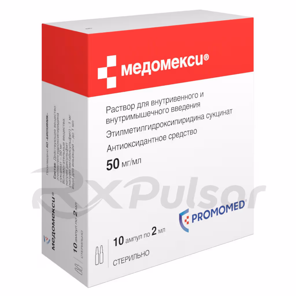 Medomexi is a heterocyclic antioxidant medication available as a solution for intravenous (IV) and intramuscular (IM) injection. Its primary active component, ethylmethylhydroxypyridine succinate, targets free radical damage, a significant contributor to various health issues. This powerful antioxidant works by improving the metabolic processes within brain tissue and enhancing blood supply to these crucial areas.
