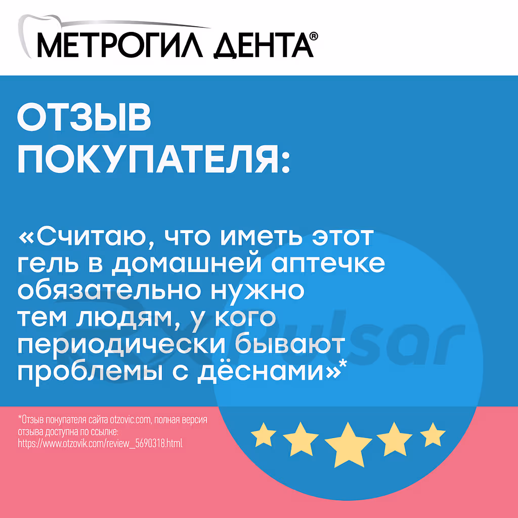 Gently squeeze a small amount of Metrogil Denta onto a clean fingertip or cotton swab. Avoid applying excessive amounts of gel, as this will not necessarily increase effectiveness. A thin layer is sufficient to cover the affected area and ensure optimal penetration into the gum tissue.