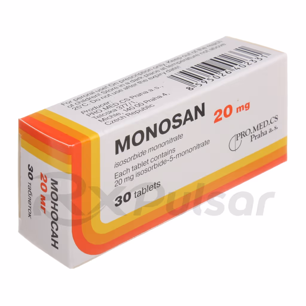 Monosan, containing the active ingredient isosorbide mononitrate, is a medication primarily used to treat and prevent angina pectoris (chest pain). Its vasodilating properties help improve blood flow to the heart, reducing the symptoms associated with angina. This makes it a valuable tool in managing heart health.