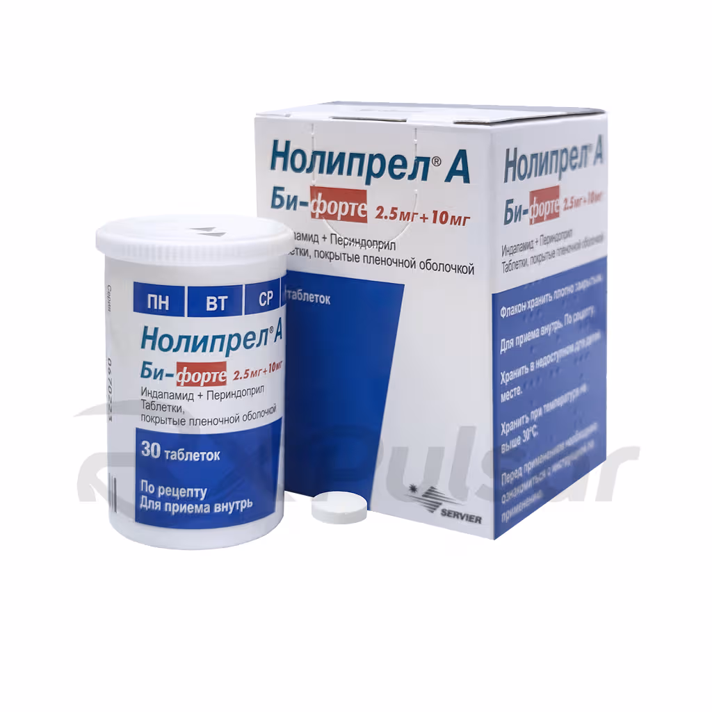 Noliprel A Bi-Forte is a fixed-dose combination medication containing both perindopril, an ACE inhibitor, and indapamide, a diuretic. This unique combination works synergistically to lower blood pressure more effectively than either component alone. The combined action addresses multiple aspects of hypertension management.