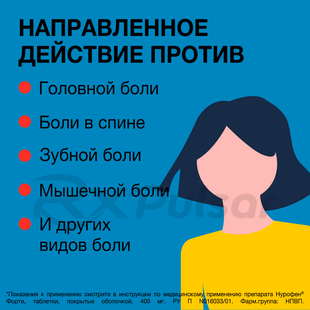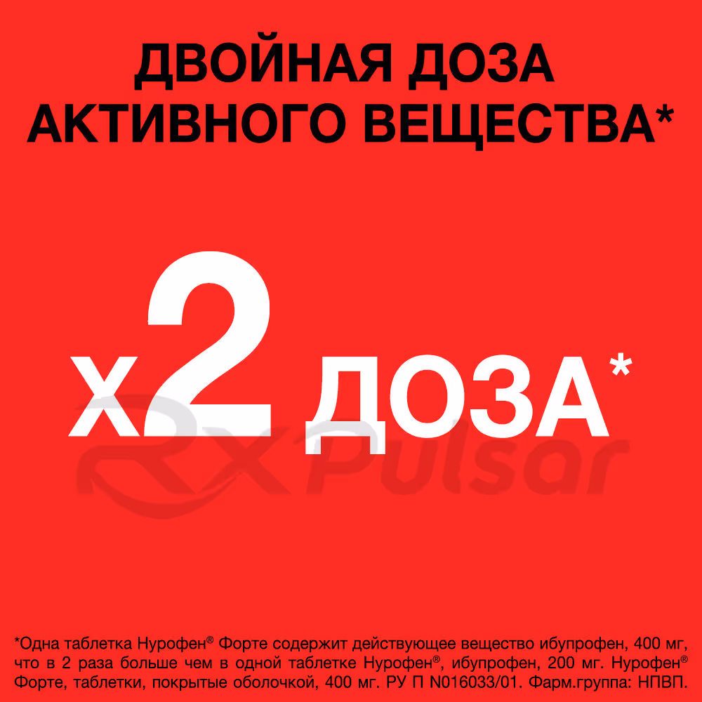 Nurofen Forte is a powerful analgesic and antipyretic medication containing ibuprofen, a non-steroidal anti-inflammatory drug (NSAID). Each tablet delivers a high dose (400mg) of ibuprofen, making it particularly effective for relieving moderate to severe pain and fever. This higher concentration compared to standard ibuprofen products allows for quicker and more substantial pain relief.