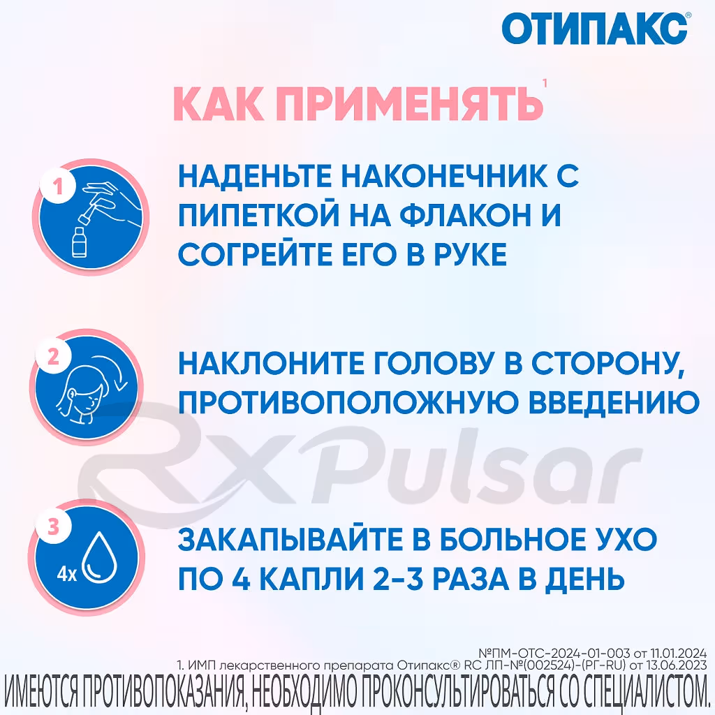 - Potential for Interaction: While rare, OTIPAX may interact with other medications. Always inform your doctor about all medications, including over-the-counter drugs, herbal remedies, or supplements, that you are currently taking before starting treatment with OTIPAX. This proactive approach helps prevent potential drug interactions.