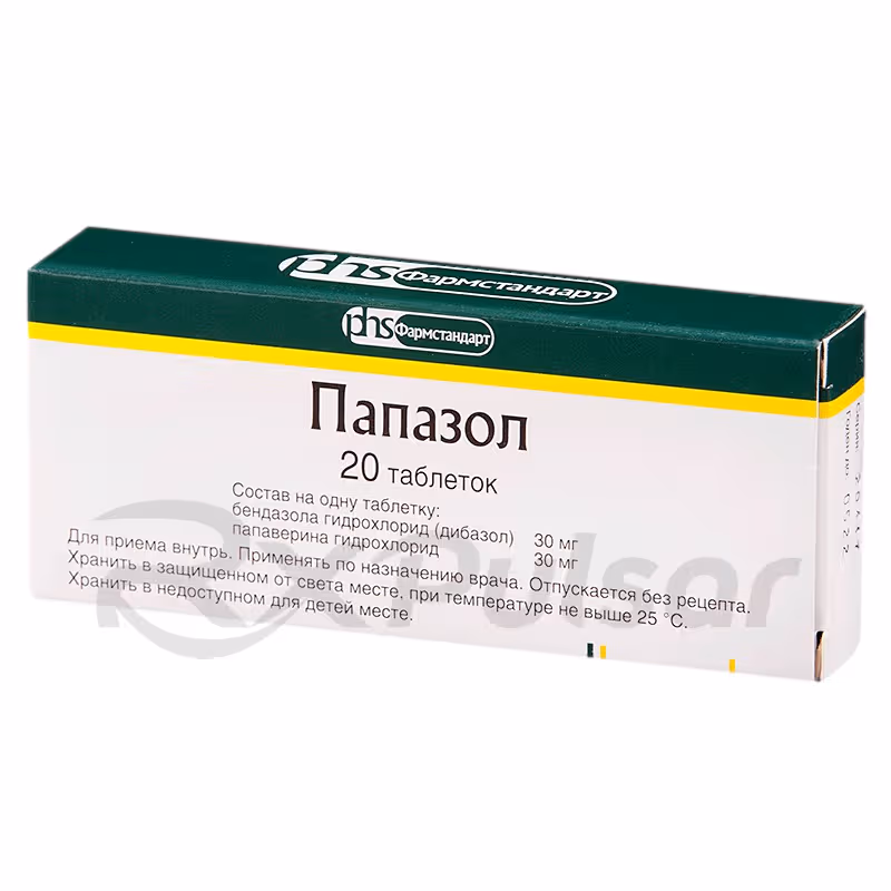 Papazol tablets are a combination medication containing two active ingredients: bendazole hydrochloride (dibazol) and papaverine hydrochloride, each contributing to the drug’s overall effects. Both components work synergistically to achieve a broader therapeutic impact than either could alone.