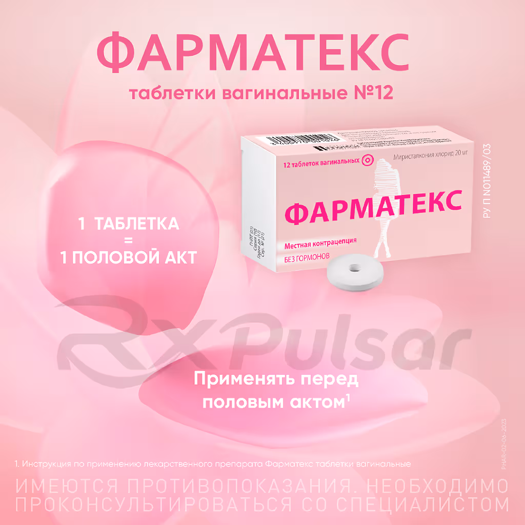 Pharmatex vaginal tablets are a non-hormonal contraceptive containing benzalkonium chloride, a spermicide. This active ingredient works by disrupting the membranes of sperm cells, preventing fertilization. Unlike hormonal contraceptives, Pharmatex does not affect the menstrual cycle, libido, or fertility.