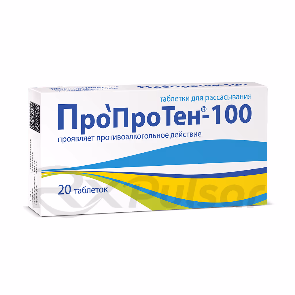 PROPROTEN-100 is a medication designed to aid in the management of alcohol dependence. Its orodispersible tablet form allows for quick and easy administration, promoting convenient usage. The medication works by modifying the activity of a specific protein in the brain, influencing neurotransmission.