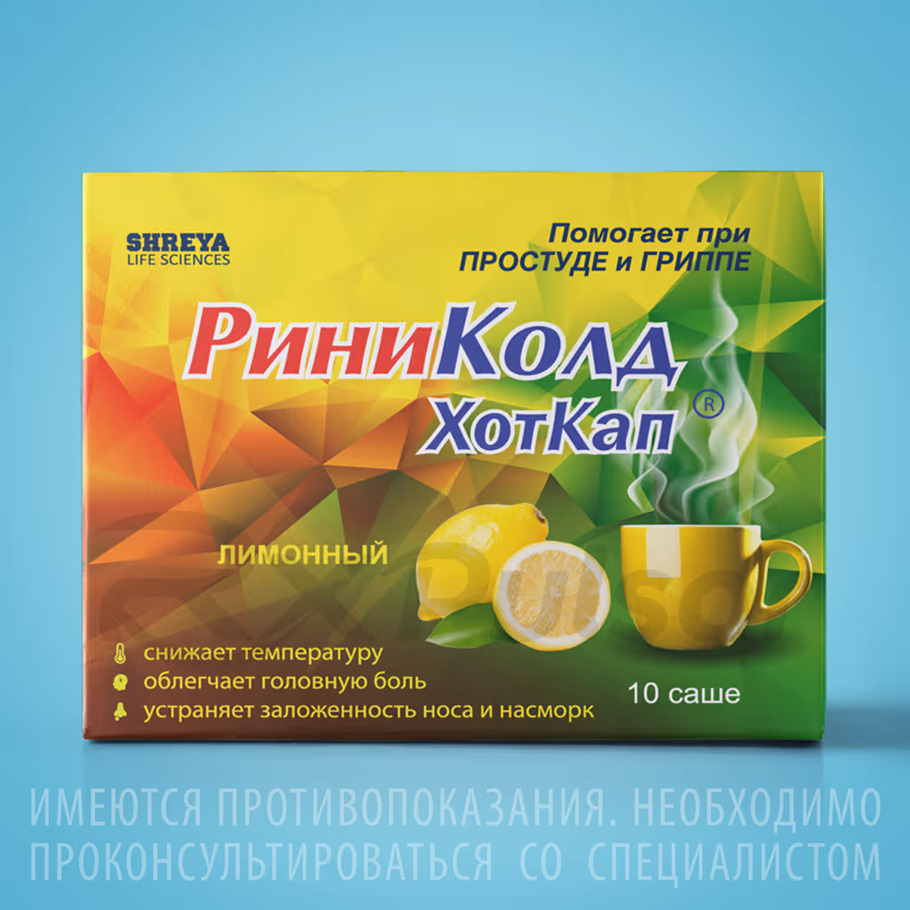 RiniCold Hotcap is a multi-symptom cold and flu relief medicine designed for rapid action. Its convenient powder form dissolves easily in hot water, delivering a soothing and effective remedy. The pleasant lemon flavor makes taking the medicine more enjoyable.