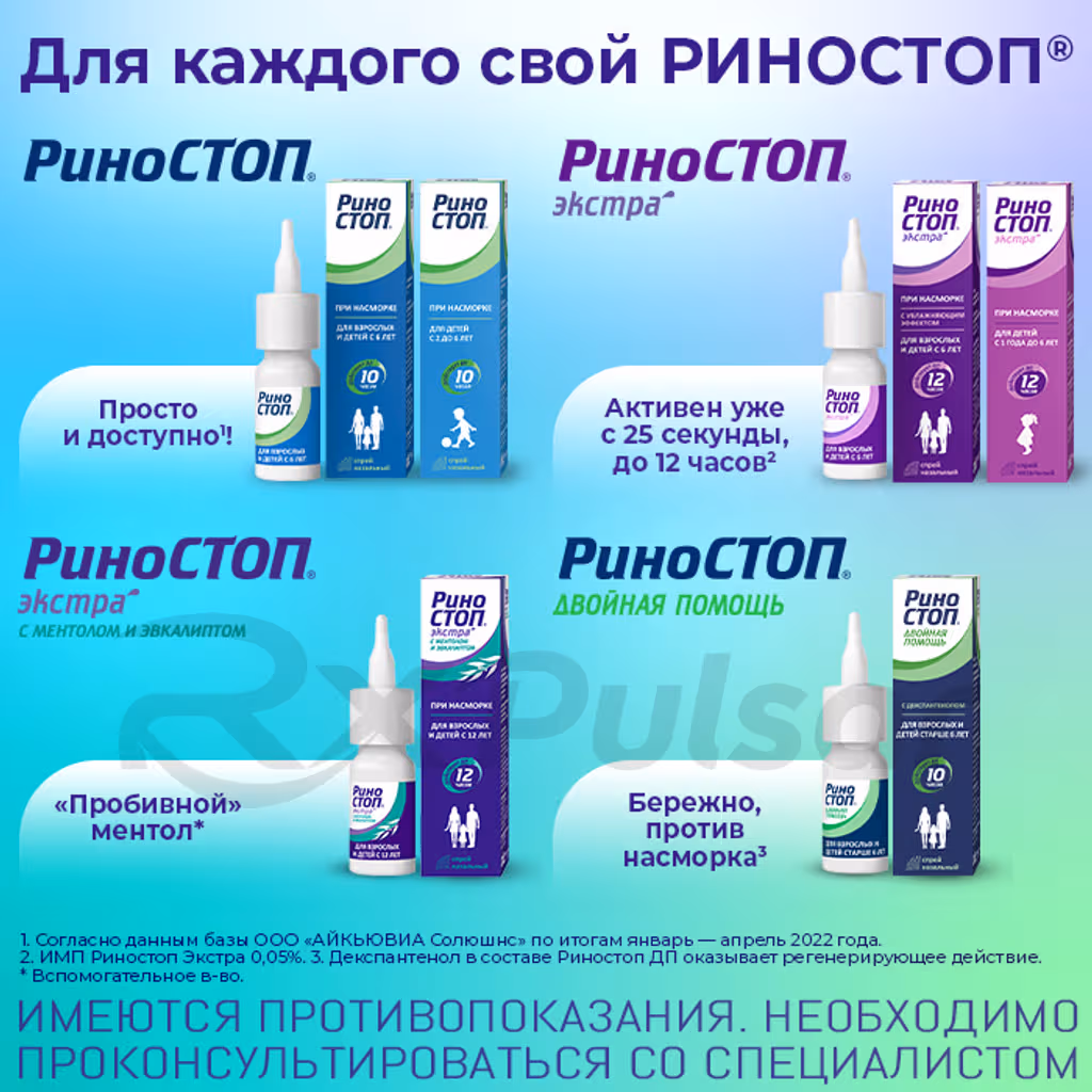 Further research into the specific formulation of RINOSTOP DOUBLE RELIEF is needed to fully elucidate its mechanism of action. Understanding the exact interplay between the active ingredients is crucial for assessing its efficacy in comparison to other nasal decongestants and for identifying potential interactions with other medications. Always consult the product packaging or your healthcare provider for the most accurate and up-to-date information.