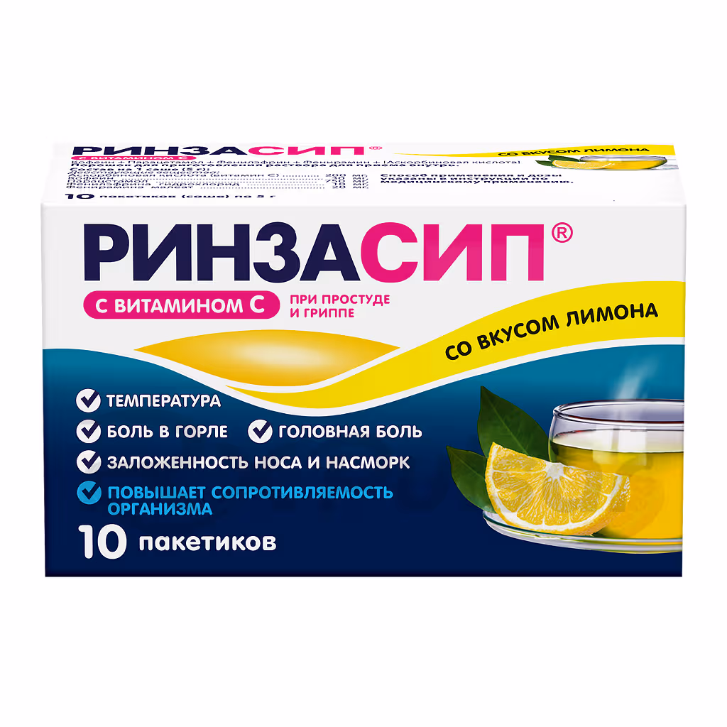 Rinzasip with Vitamin C is a combination medication formulated as a lemon-flavored powder for oral solution. It’s designed to provide symptomatic relief from the common cold and flu. This means it targets the symptoms, such as fever, aches, and nasal congestion, rather than curing the underlying illness itself. The convenient single-dose sachets make it easy to prepare and consume.