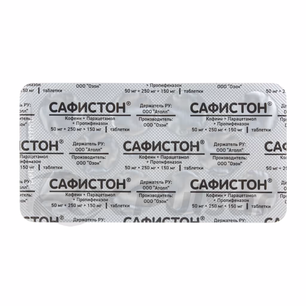SAFISTON is a combination analgesic designed to provide relief from mild to moderate pain. Its formulation typically includes paracetamol, propyphenazone, and caffeine, each component contributing to its pain-relieving effects. This synergistic action targets various pain pathways, offering a broader approach to pain management than single-ingredient analgesics.