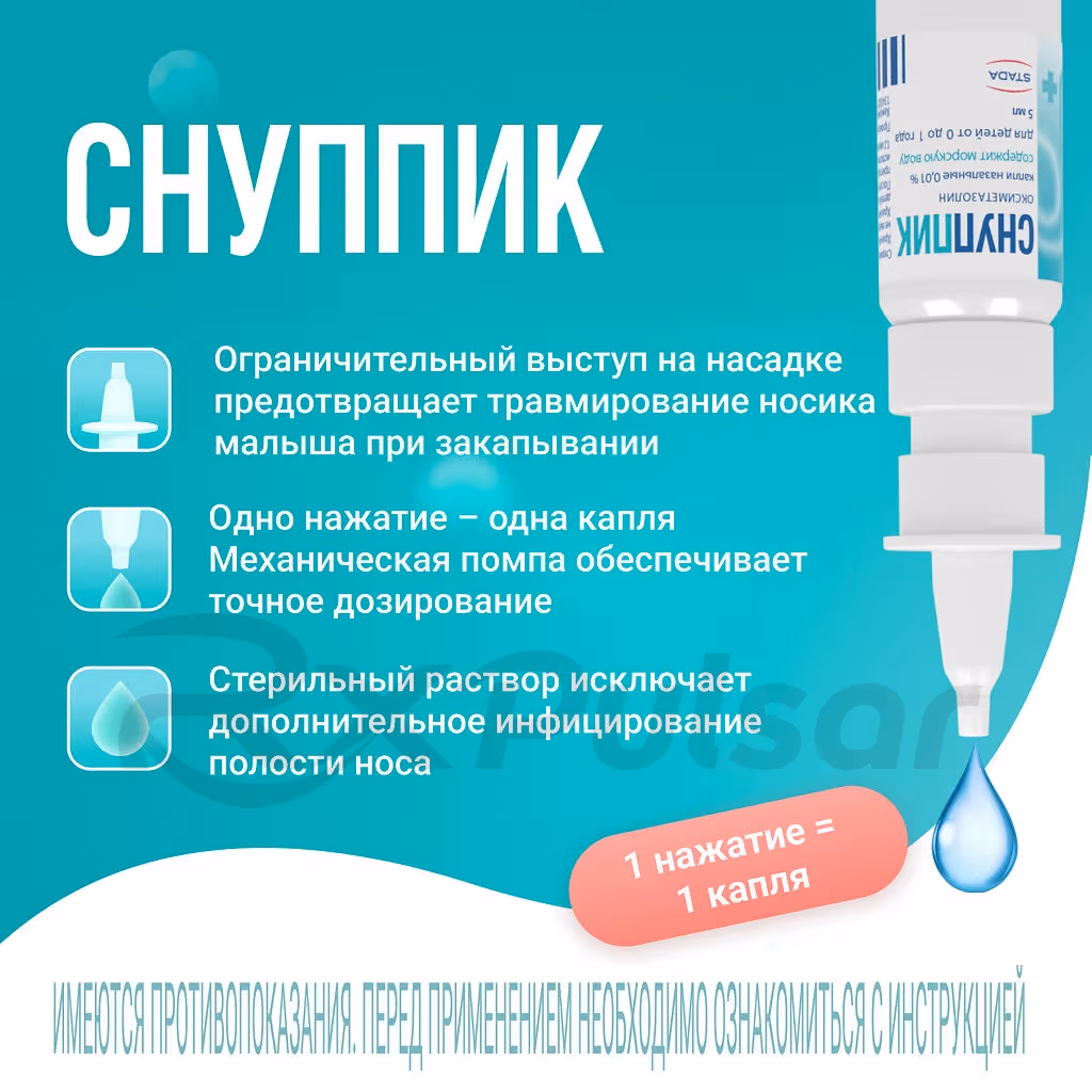 SNOOPIK Nasal Drops 0.01% are a nasal decongestant formulated to provide rapid relief from nasal congestion in infants and young children. The active ingredient works by constricting blood vessels in the nasal passages, thus reducing swelling and inflammation. This mechanism of action allows for improved airflow and easier breathing.