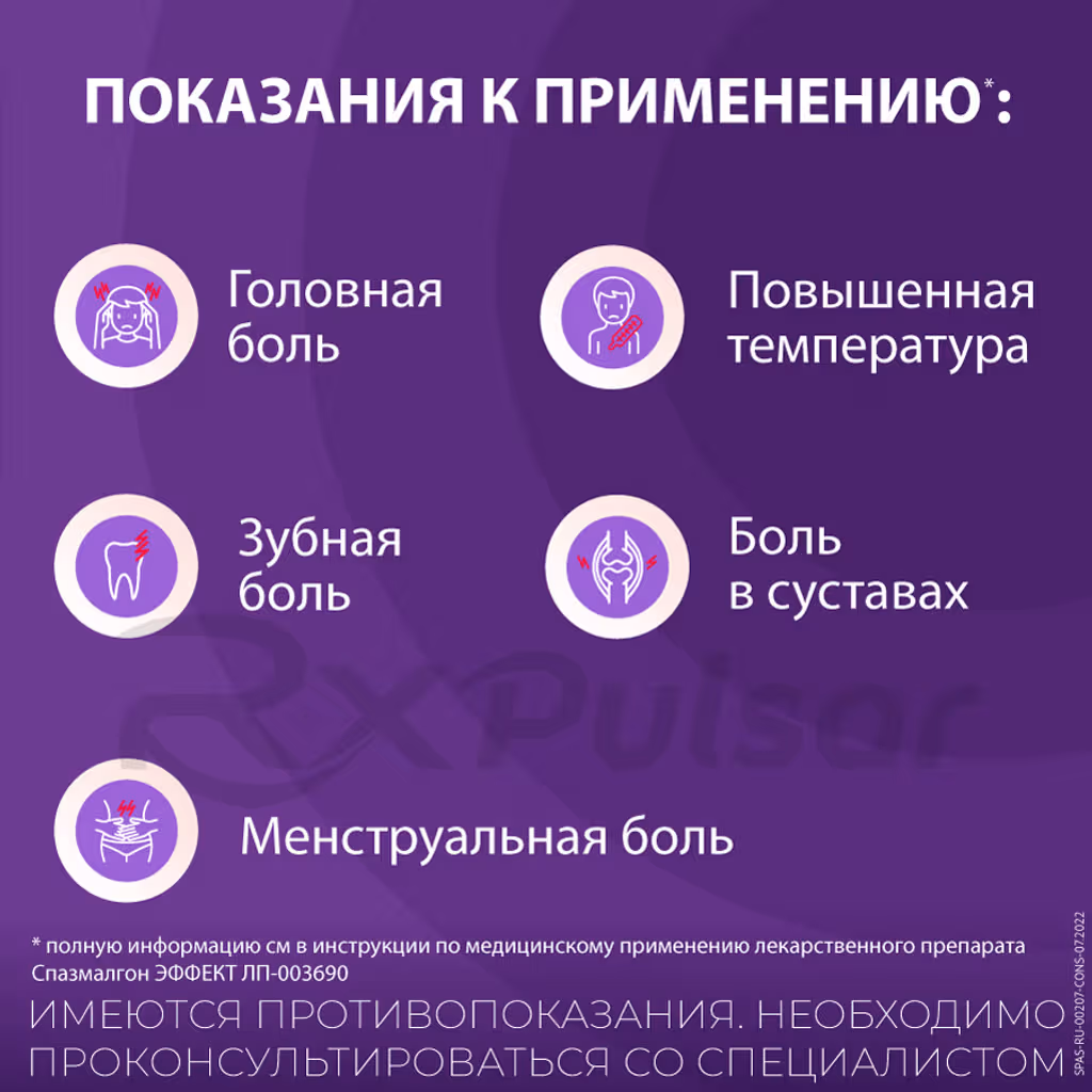 Spazmalgon Effect tablets are indicated for the relief of a wide range of painful conditions, particularly those involving both pain and muscle spasms. Its multi-component formula makes it effective where simpler analgesics might fall short. The medication’s broad applicability stems from its ability to target multiple pain pathways simultaneously, offering relief from various sources of discomfort.