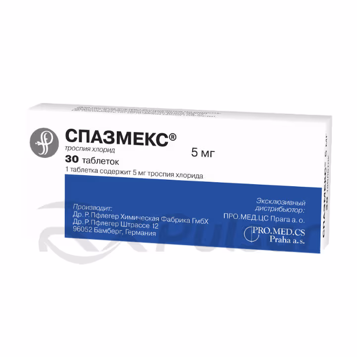 SPAZMEX, containing the active ingredient trosypium chloride, is a medication primarily used to manage overactive bladder symptoms. It works by relaxing the muscles of the bladder, reducing spasms and improving bladder control.