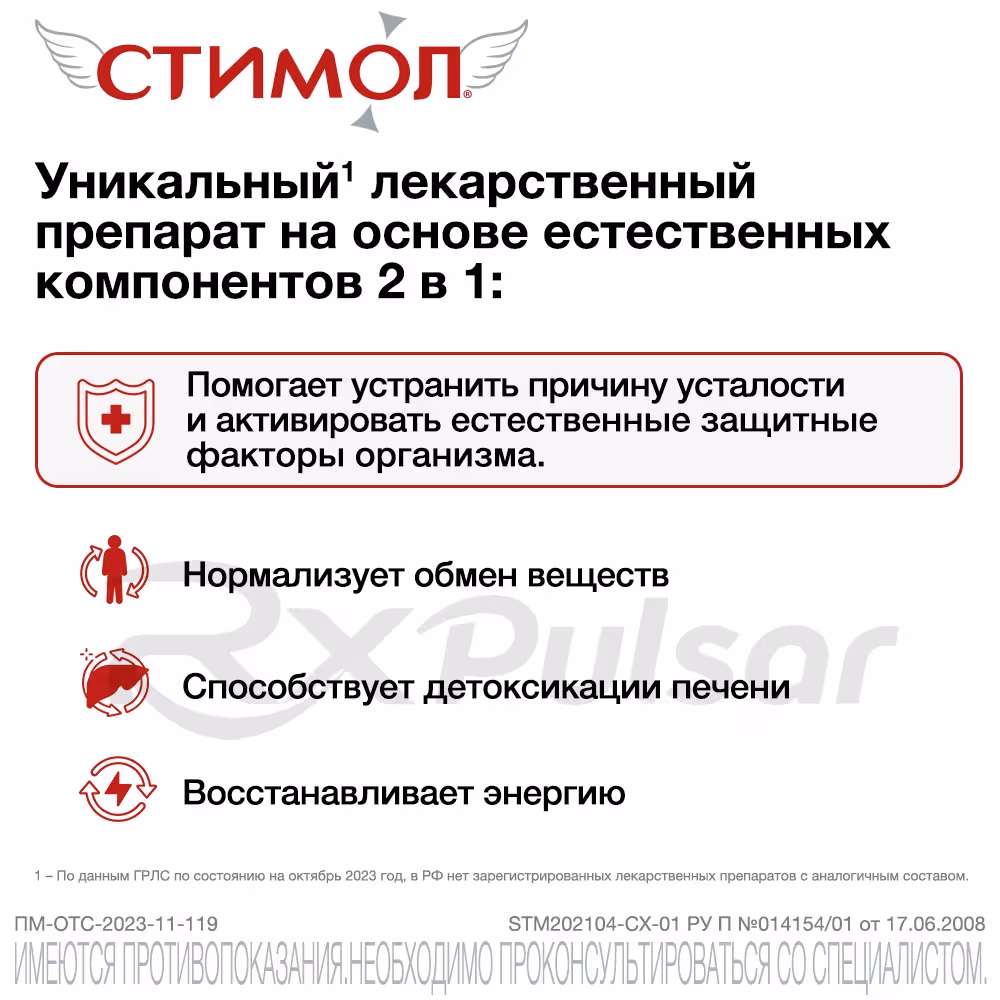 STIMOL is indicated for the symptomatic treatment of functional asthenia. This means it helps manage fatigue that isn’t caused by an underlying medical condition. It’s often used to alleviate fatigue during recovery from illness or periods of increased stress.