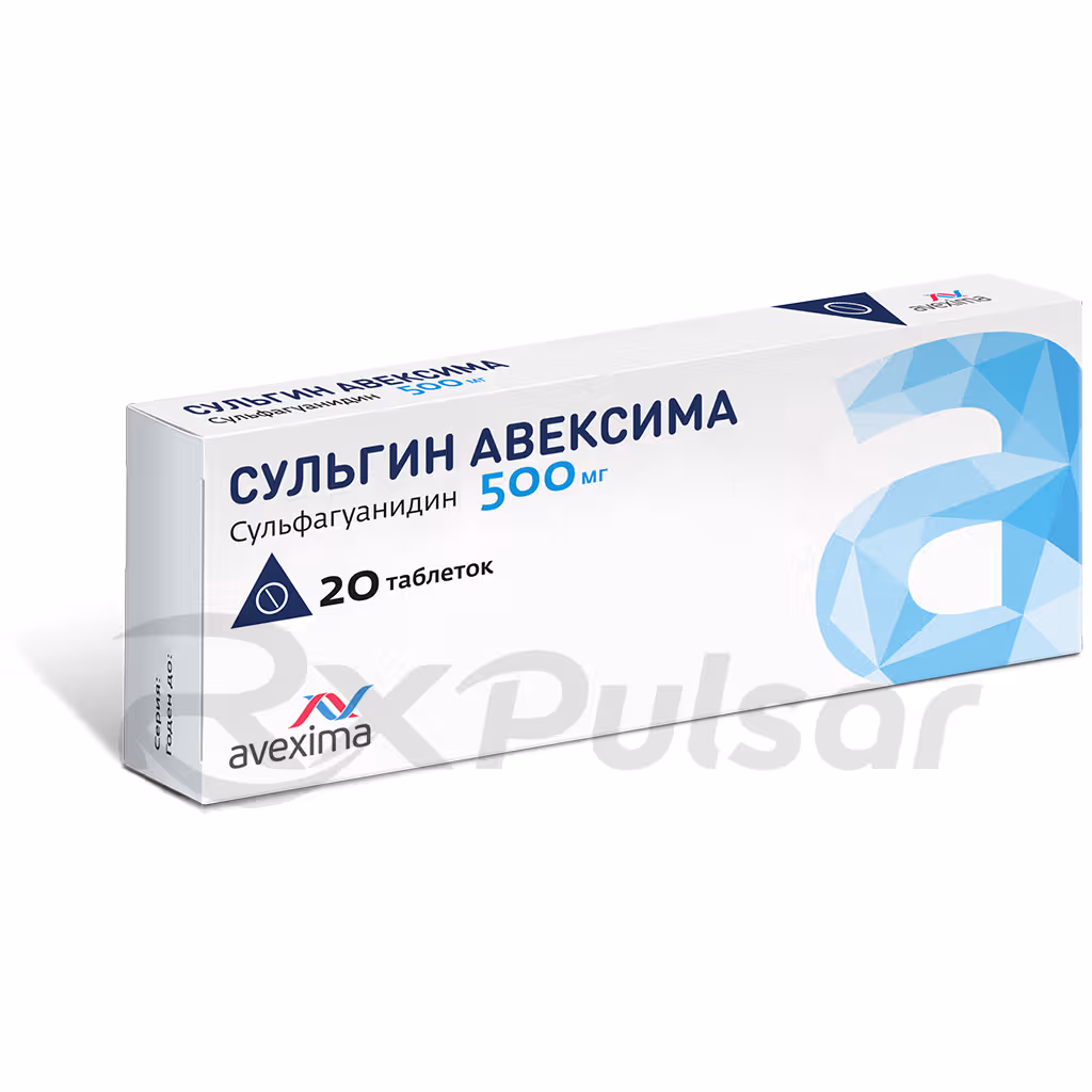 Sulgin Avexima, containing the active ingredient sulfadiazine, is an antibacterial agent effective against various gram-positive and gram-negative microorganisms. Its primary application lies in treating intestinal infections, demonstrating effectiveness against common pathogens.