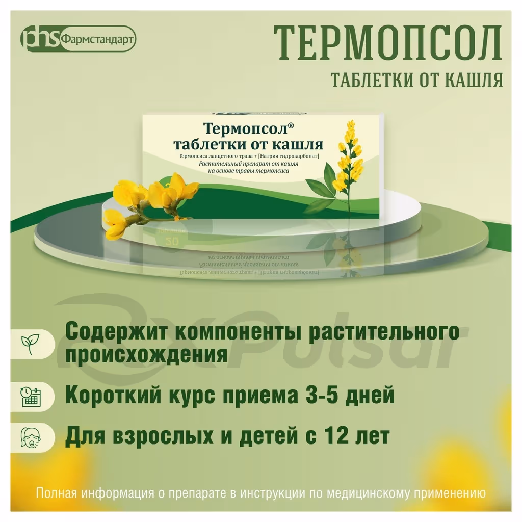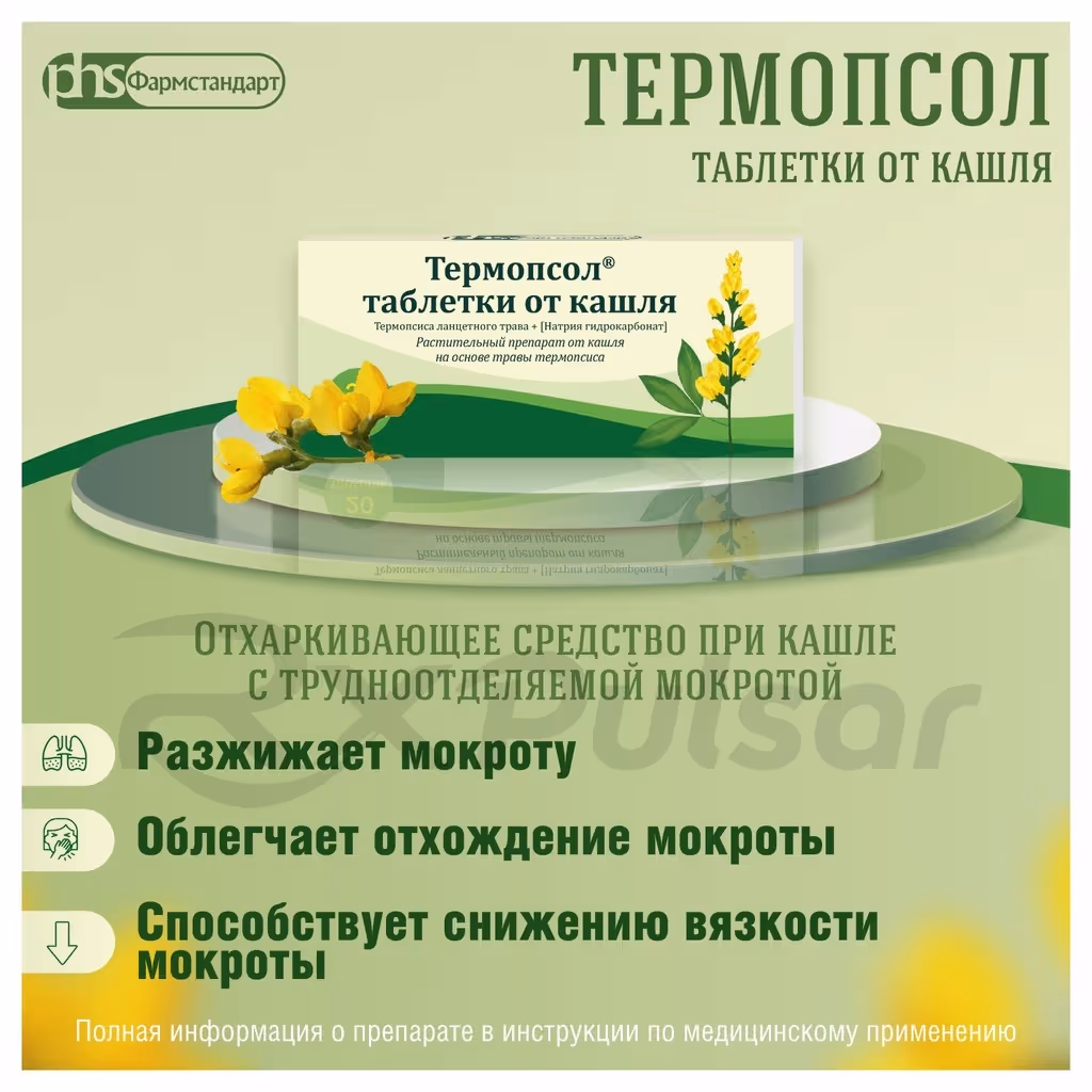 Thermopsol is a plant-based medication designed to alleviate coughs associated with various respiratory conditions. Its formulation utilizes the power of natural ingredients to promote expectoration and soothe irritated airways.