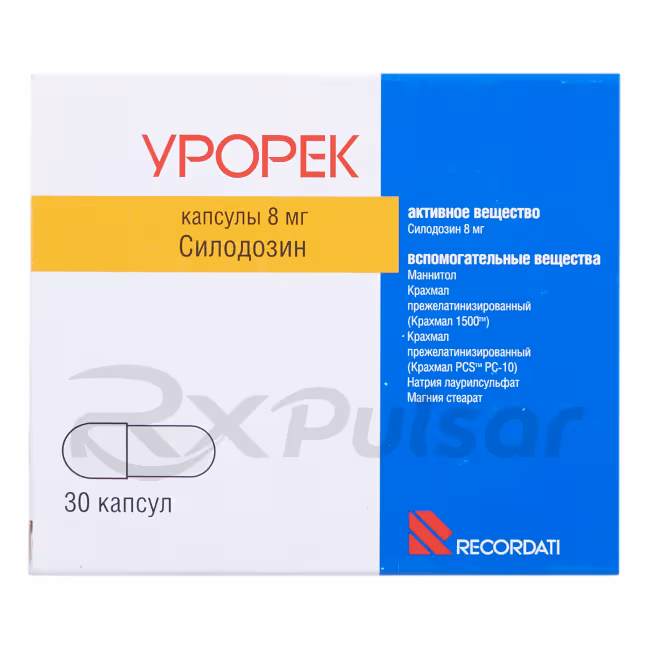 Silodosin, the active ingredient in UROREC, selectively blocks alpha-1A adrenergic receptors in the prostate and urinary tract. This selective action minimizes potential side effects associated with non-selective alpha-blockers.
