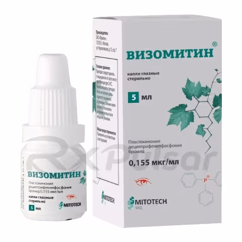 Vizomitin eye drops are a keratoprotective and antioxidant ophthalmic solution designed to address various eye conditions. Its primary function is to improve the stability and health of the tear film, a crucial component for maintaining eye surface hydration and comfort. The formulation contains a unique active ingredient, plastoquinonyldecyltriphenylphosphonium bromide (SkQ1), a mitochondrially-targeted antioxidant.