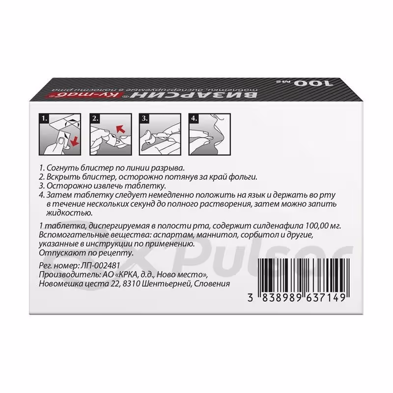 Vizarsin Q-Tab’s unique orodispersible nature simplifies administration. Simply place the tablet on your tongue; it will dissolve rapidly without the need for water. This convenient method ensures quick absorption and discreet use. Remember that Vizarsin Q-Tab only works with sexual stimulation; it does not cause spontaneous erections.