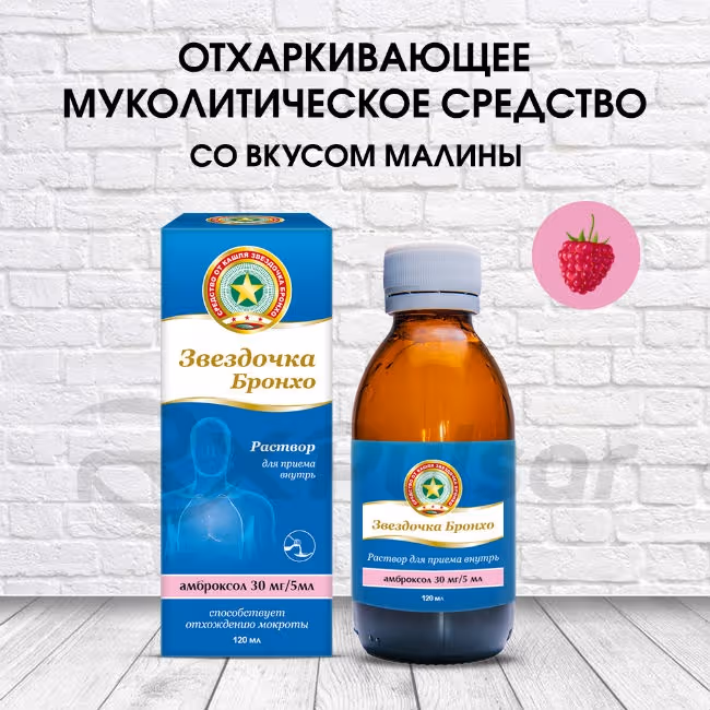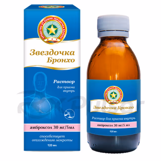 The active ingredient in Zvezdochka Broncho is ambroxol hydrochloride. This compound works by stimulating the production of surfactant, a substance that helps reduce the viscosity of mucus, making it easier to expectorate.