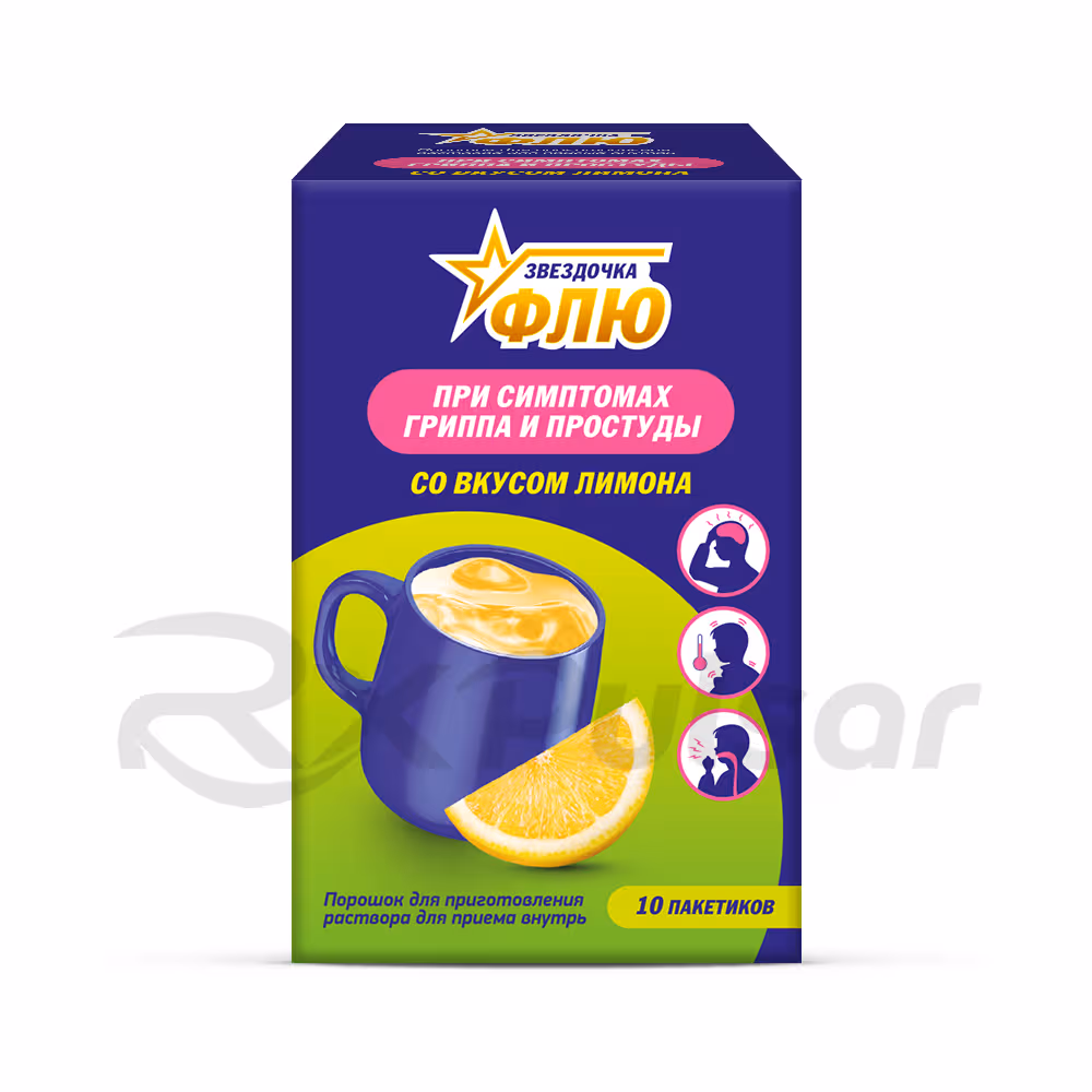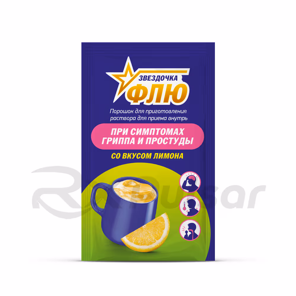 ZVEZDOCHKA FLU is a powder for oral solution designed to provide symptomatic relief from various ailments. It’s formulated to address the unpleasantness associated with common colds, influenza, and other upper respiratory infections.